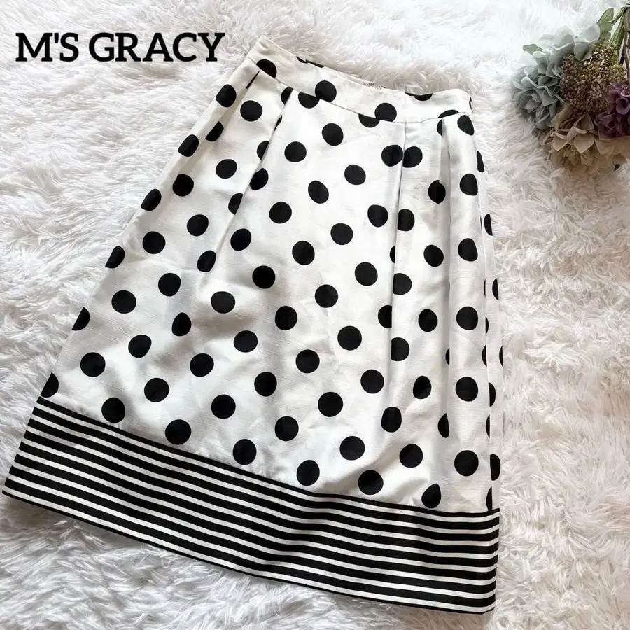 [ 엠즈 그레이시 ] 도트 x 보더 스커트 화이트 작은 사이즈