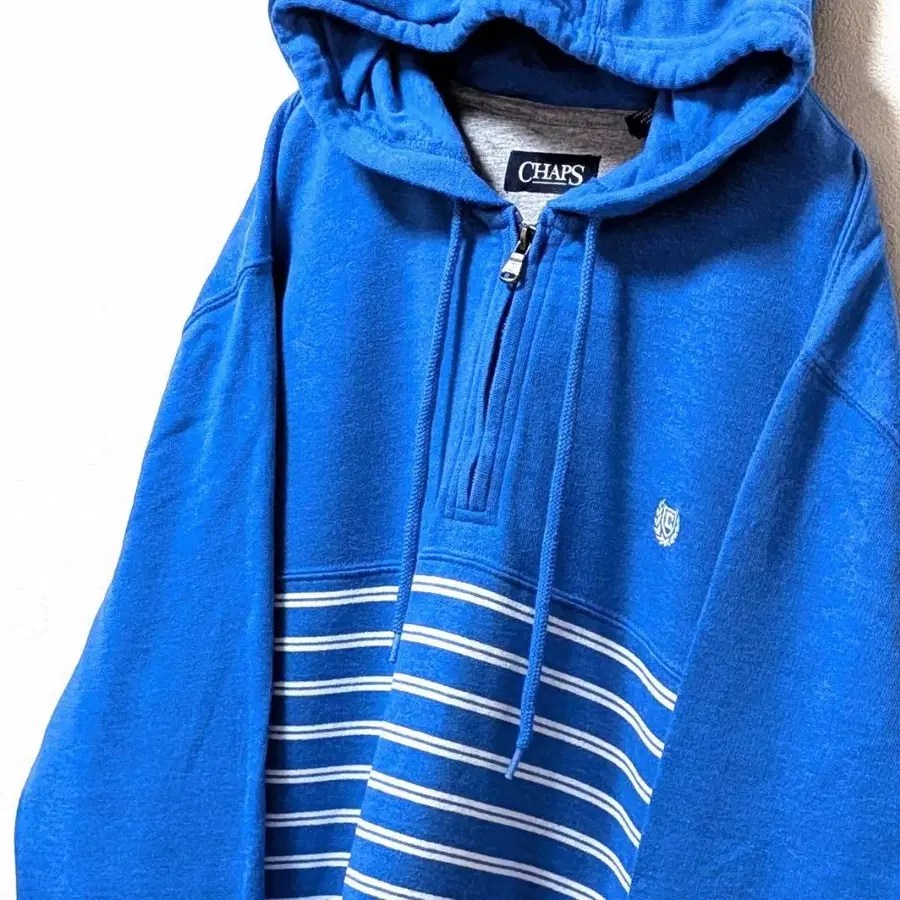 챔피언스 로고 자수 하프 지퍼 후드 맨투맨 블루 파랑 L 구제 의류