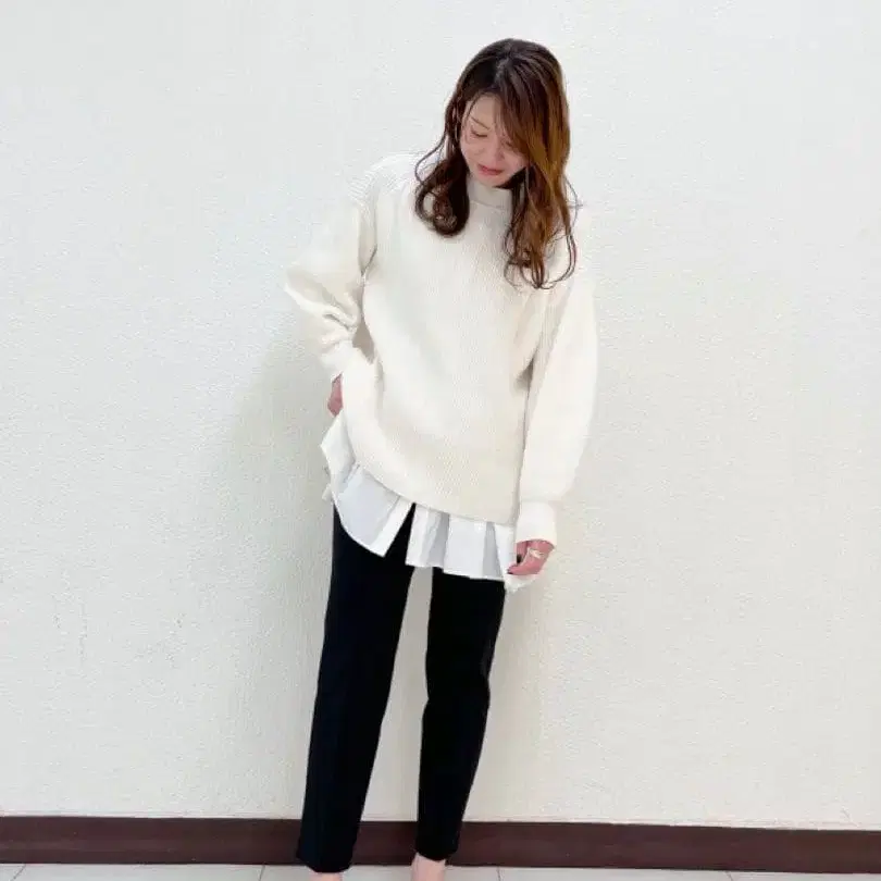 plst 플라스테 2023 미들 게이지 퍼프 슬리브 스웨터 화이트 M