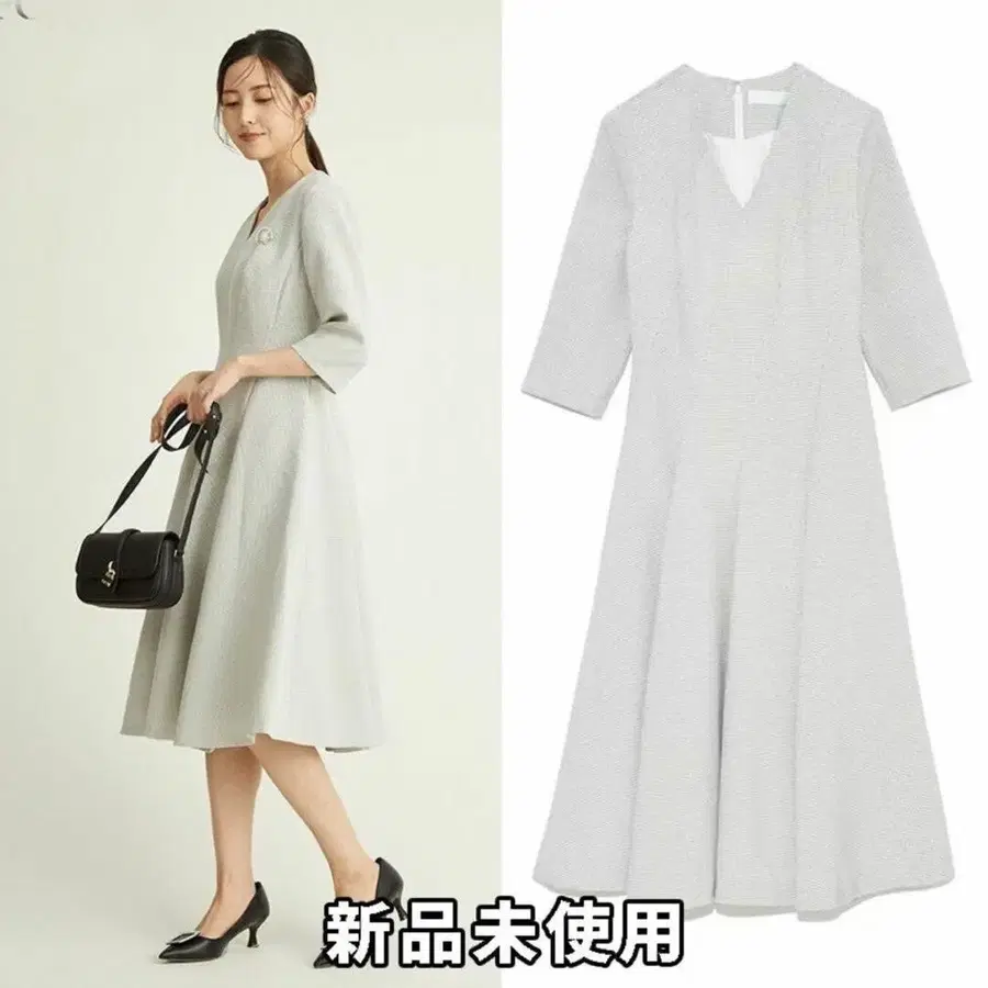 유연한 탄성이 있는 트리플 크로스를 사용하여 페미닌한 실루엣으로 완성된 고급스러운 원피스입니다.
