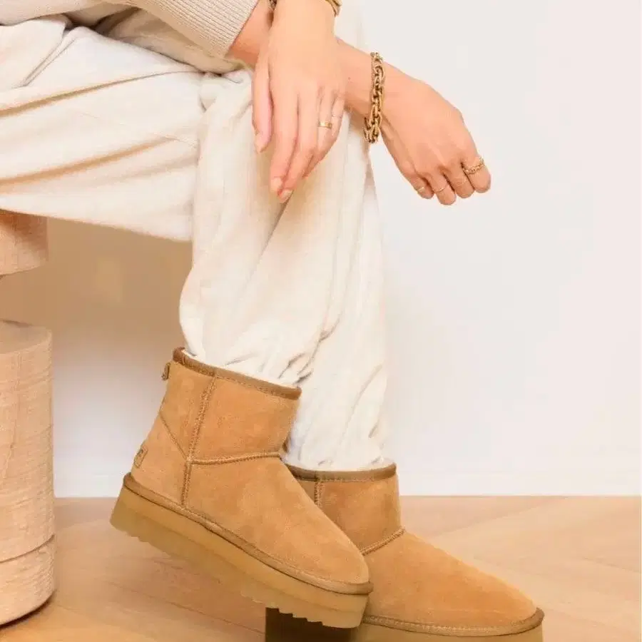 • 통굽 베이지 스웨이드 어그 부츠