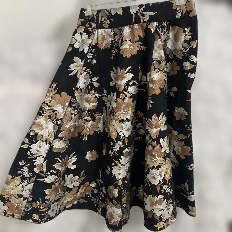 RANDA 꽃무늬 플레어 스커트 무릎 기장 블랙