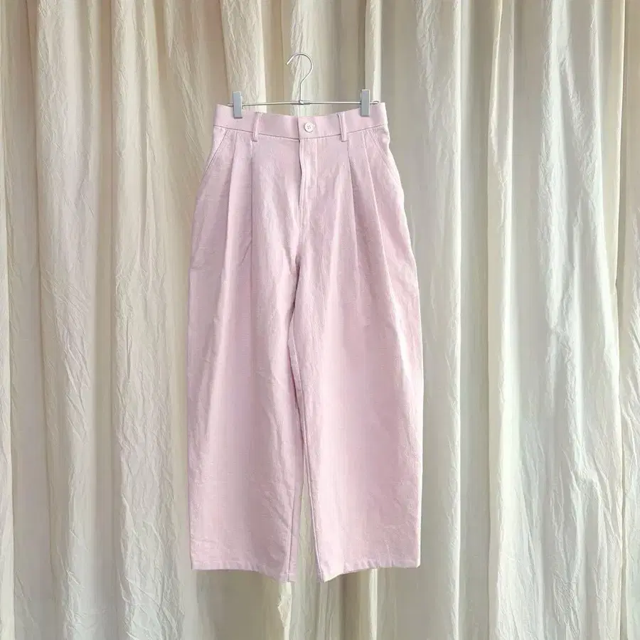 턱 팬츠 핑크 지퍼 여밈 면 린넨 내추럴