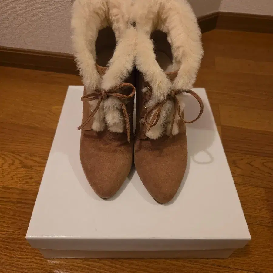DIANA 베이지 브라운 퍼 장식 힐 부츠