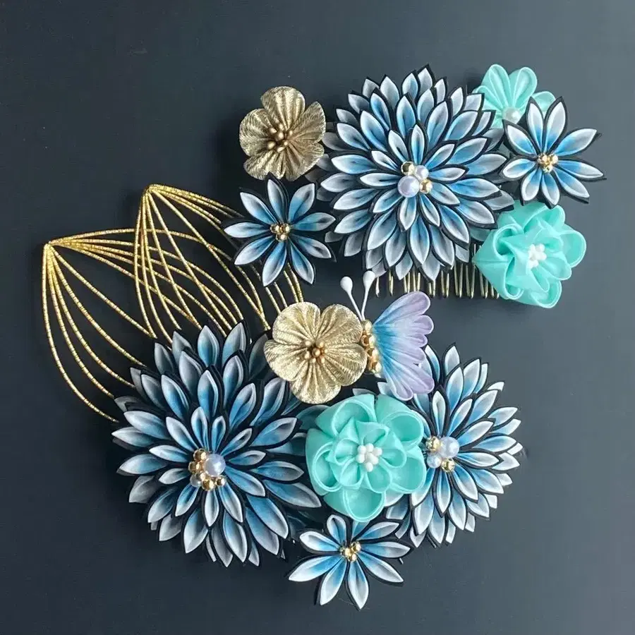 쓰마미자이쿠 성인식 머리 장식 푸른색 흐림