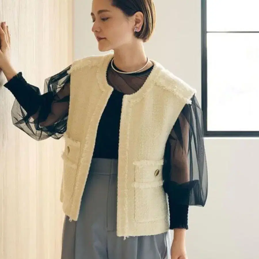 새상품급 그린 라벨 릴랙싱 트위드 베스트 아이보리
