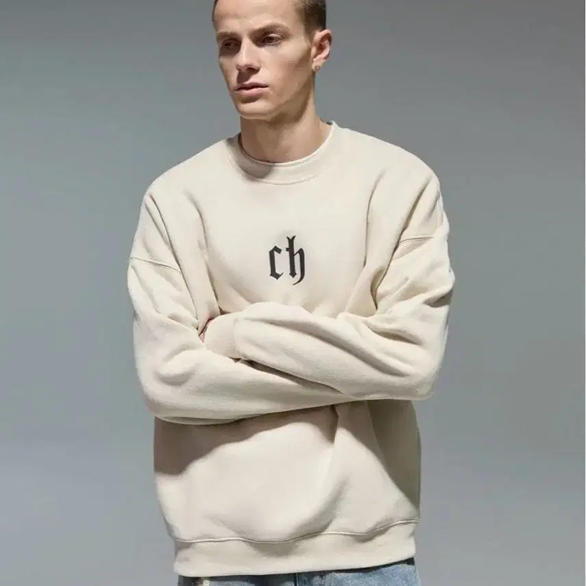 베이지 로고 캐주얼 맨투맨
