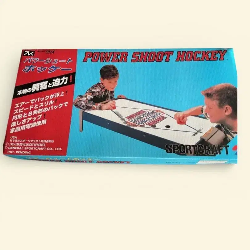 미개봉 미사용품! 파워 슈트 하키 USA 제너럴 스포츠 크라프트사 독점 계약 주식회사 타카오 에어 하키 보드게임 POWER SHOOT HOCKEY 주식회사 타카오 - 사용 인원: 2인용 ○ 사이즈 세로 117cm x 가로 51cm x 높이 20cm 송풍 팬 포함 ○ 미사용품으로, 크리스마스 선물 포장 그대로 장기 보관했습니다. 그대로 두고 있습니다. 따라서 작동 등 비품 점검 등은 하지 않았습니다. 크리스마스 패키지 그대로 발송합니다. 외부 박스는 상당히 손상이 있습니다. 이해해 주시는 분만 잘 부탁드립니다. 수령 후 반품은 불가합니다. ○ 그리운 시간으로, 타임슬립 해보지 않으시겠어요? ○ 컬렉션 또는 찾으시는 분, 어떠신가요! ○ 파워 슈트 하키는, 타카오가 미국 제너럴 스포츠 크라프트사와 독점 계약하여 판매했던, 송풍 팬이 달린 레트로 에어 하키형 보드게임입니다. ○ 기본 정보 • 상품명: 파워 슈트 하키 • 계약: USA 제너럴 스포츠 크라프트사와의 독점 계약품으로서 [주식회사 타카오] 명의로 판매. • 분류: 가정용 에어 하키대 보드게임으로, 테이블에 놓고 플레이하는 타입. ○ 사이즈 사양 • 크기 참고: 세로 약 117cm x 가로 약 51cm x 높이 약 20cm 라는 기재가 있으며, 상당히 대형 탁상 게임입니다. • 메커니즘: 다이얼 면에 송풍 팬이 내장되어 있어, 에어로 팩을 띄워 미끄러지게 하는 일반적인 에어 하키 방식입니다. • 용도: 가정용이지만, 사이즈적으로는 미니 업무용에 가까운 분위기가 있는 레트로 게임으로 취급됩니다. • 기본적으로는 일반적인 에어 하키와 마찬가지로, 양 사이드에 서서 스트라이커 (말렛)로 팩을 치고받으며 상대 골에 넣는 심플한 규칙입니다. • 사이즈가 크기 때문에, 어린이뿐만 아니라 어른도 함께 놀 수 있는 패밀리 보드게임으로 즐겨졌을 것으로 생각됩니다. 에어로 팩이 부상! 스피드와 스릴! 원형과 팔각형 팩으로 즐거움 업! 가정용 전원 사용 장기 자택 보관에 이해해 주시는 분, 구매 부탁드립니다. #보드게임 #탁상게임 #에어하키