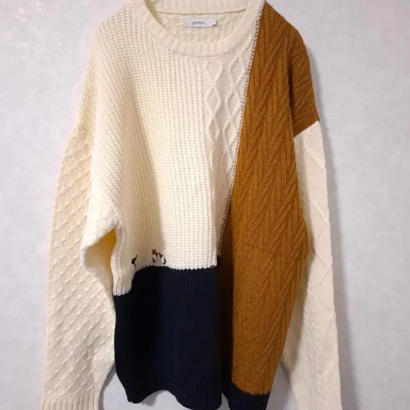 graniph 조이풀캣츠 패치워크 니트 L 고양이 자수 삼색 고양이 배색
