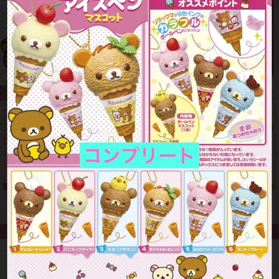리락쿠마 아이스 펜 마스코트 6종 리멘트