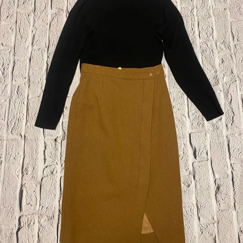 투모로우랜드 MACPHEE 브라운 타이트 스커트 랩 디자인