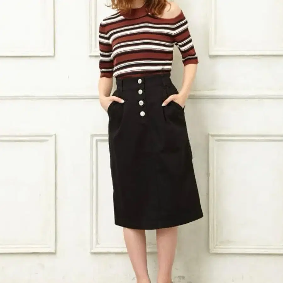 • 심플 고급 elgna 슬릿 타이 스커트 네이비
