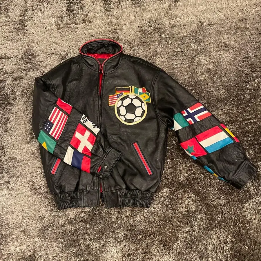 축구공 자수 가죽 자켓