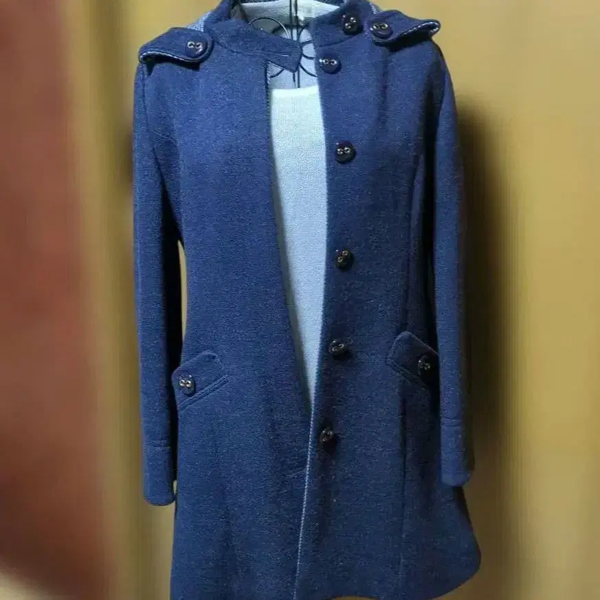 TWO:C 네이비 후드 부착 울 코트 후드는 탈부착 가능합니다