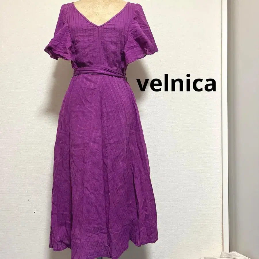 velnica 베르니카 백 버튼 V넥 프릴 슬리브 원피스