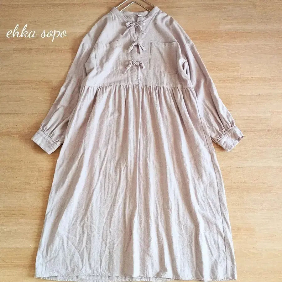 밴드 카라에 3단 리본이 귀여운 라이트 핑크의 페미닌한 원피스입니다.