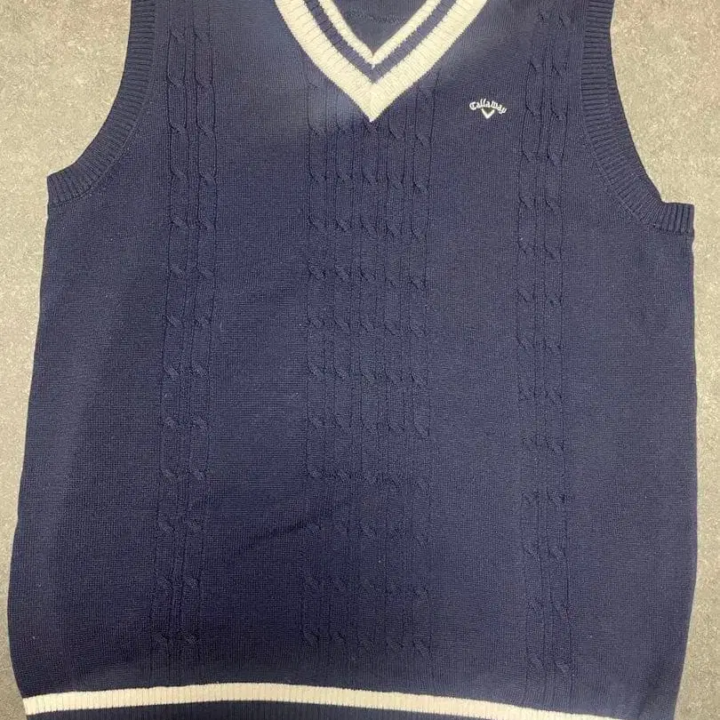 캘러웨이 골프 네이비 V넥 케이블 짜임 니트 베스트
