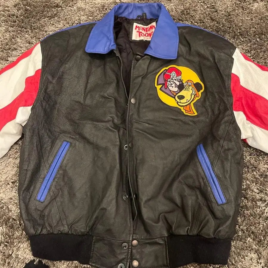 Mountain Toon 캐릭터 자수 바시티 자켓