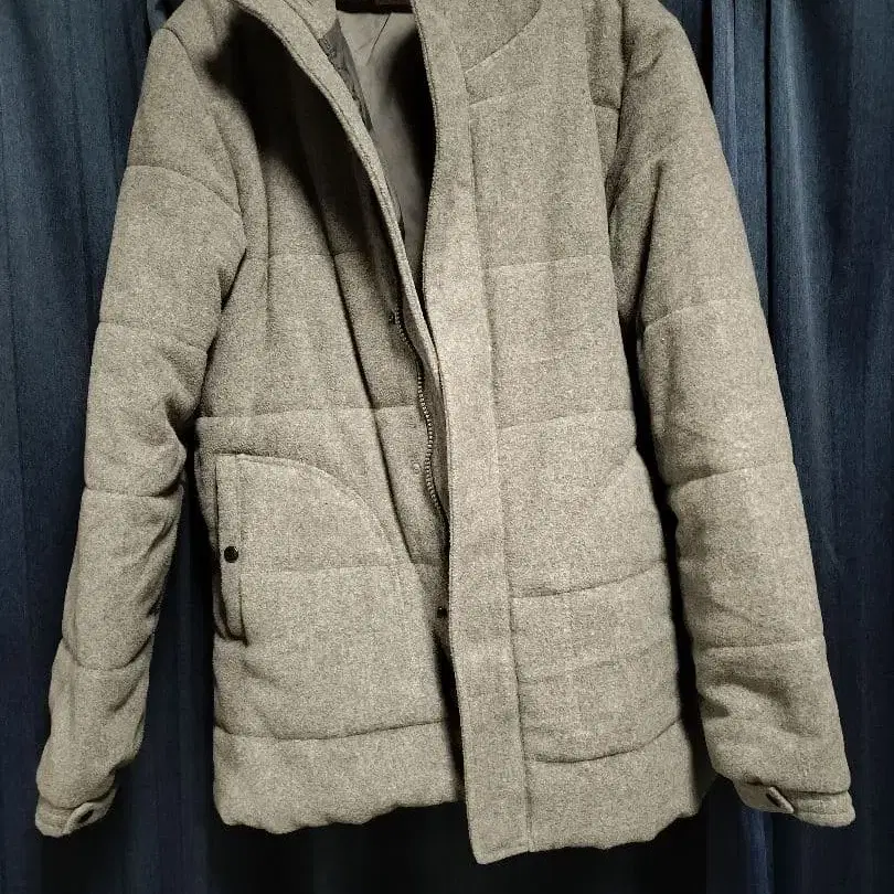 남성용 그레이 퀼팅 다운 자켓 후드 부착