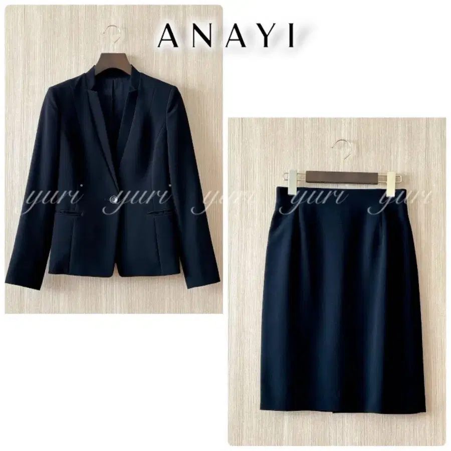 [ 1092 ] 아나이 백 새틴 스탠드 카라 자켓 스커트 수트 블랙