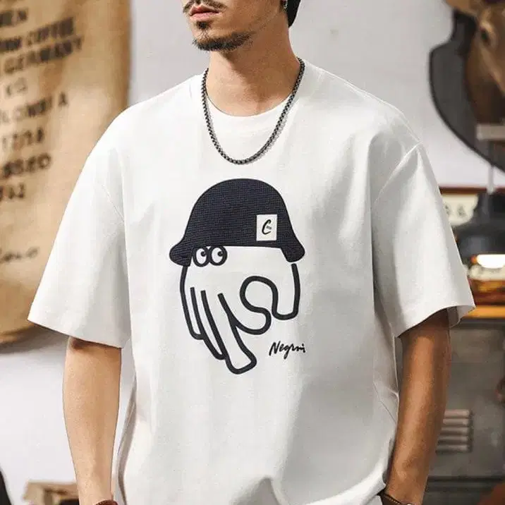 [ 새상품 ] 그래픽 프린트 화이트 T셔츠 L size 자수