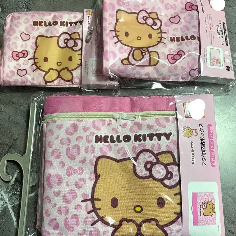 헬로키티 뚜껑 포함 수납 박스 트래블 보관 케이스 M.S 2개 세트
