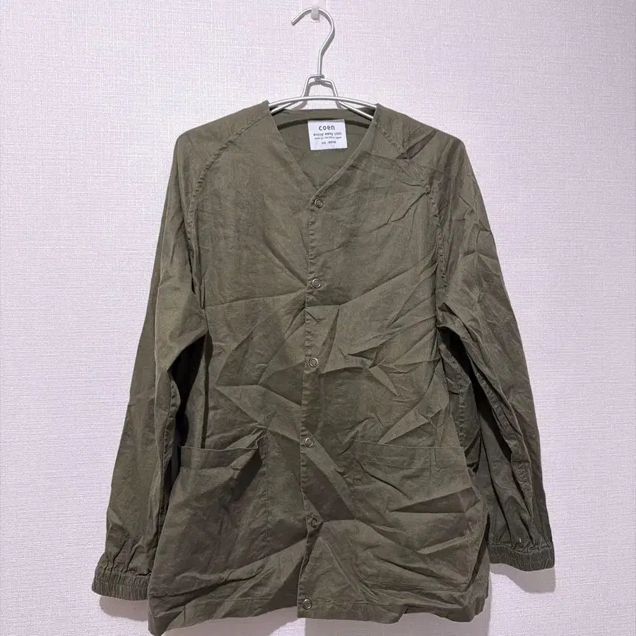coen 올리브색 버튼 달린 V넥 셔츠 M 린넨