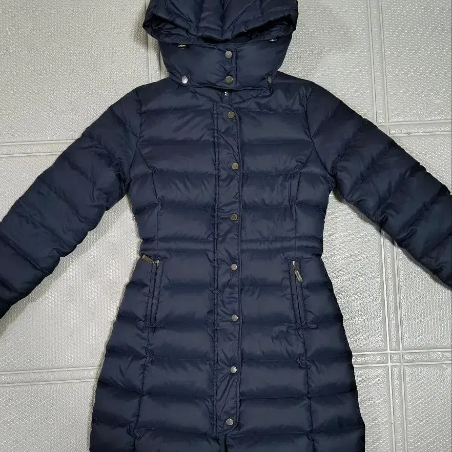 [ 새상품급 ] 베네통 네이비 후드 부착 A라인 다운 코트