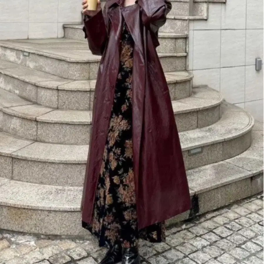 Ameri RAFFINE FAKE LEATHER TRENCH COAT