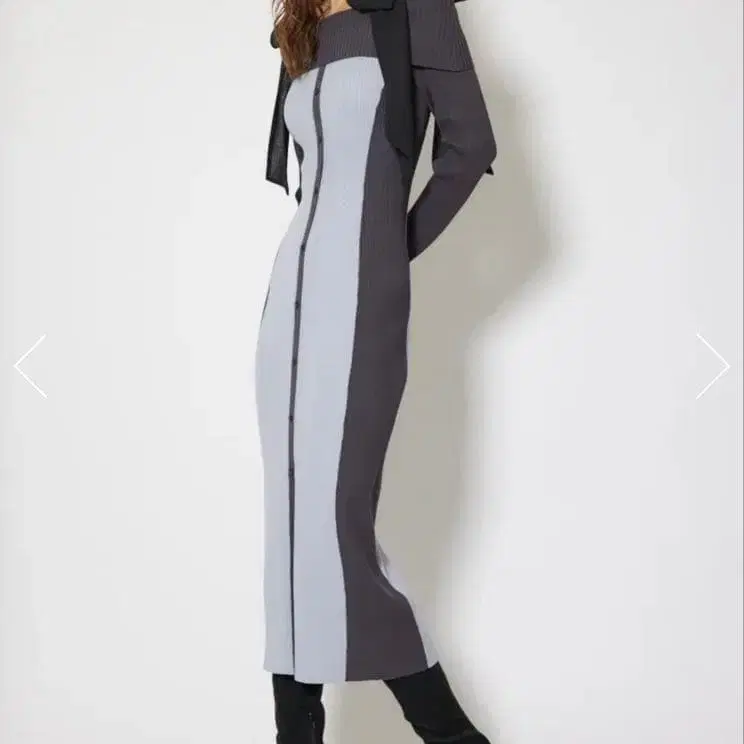 시크한 배색이 포인트인 리브 니트 원피스가 등장했습니다.