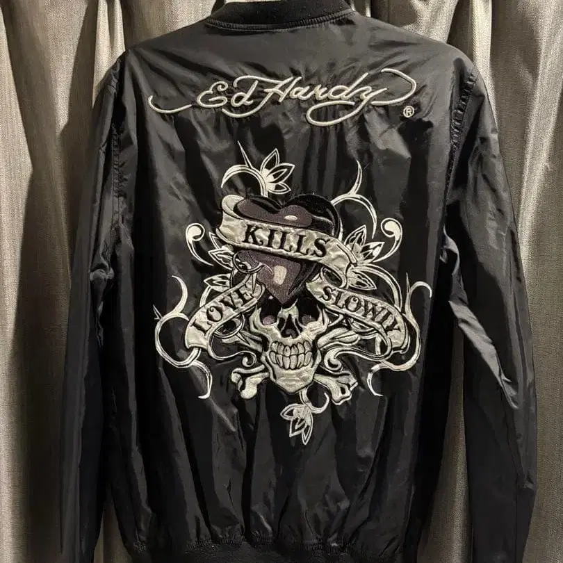 Ed Hardy 스컬 자수 바시티 자켓 M 블랙