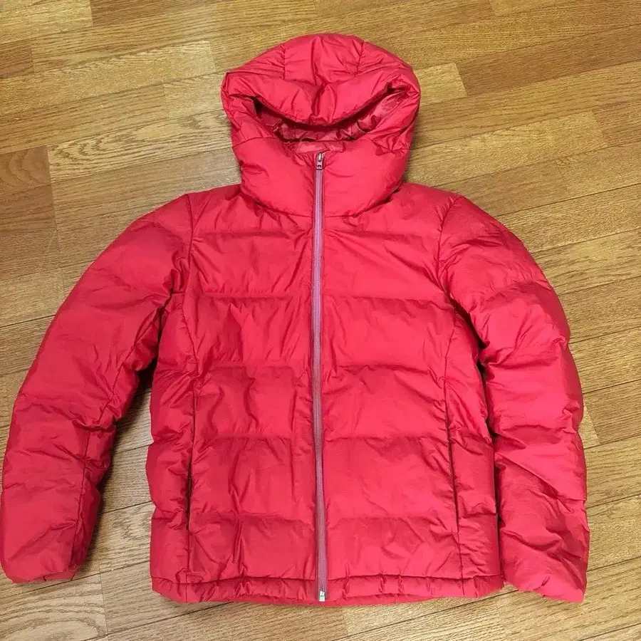 유니클로 빨간색 후드 부착 심리스 다운 자켓