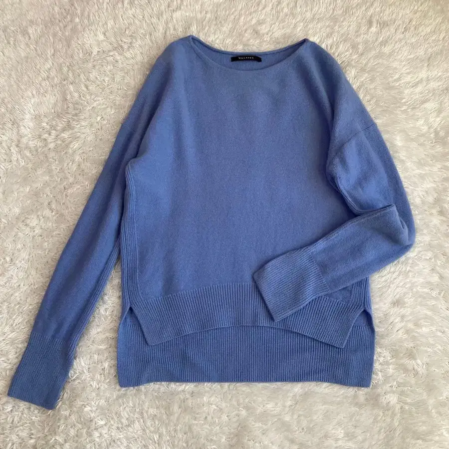맥피 캐시미어 혼방 보트넥 긴팔 니트 스웨터 S 블루