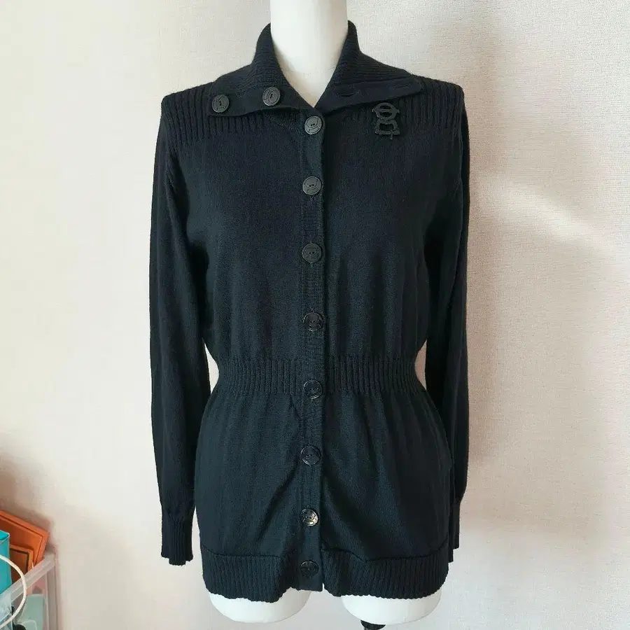 피코네 긴팔 가디건 블랙 40 롱 기장 울 얇은 소재