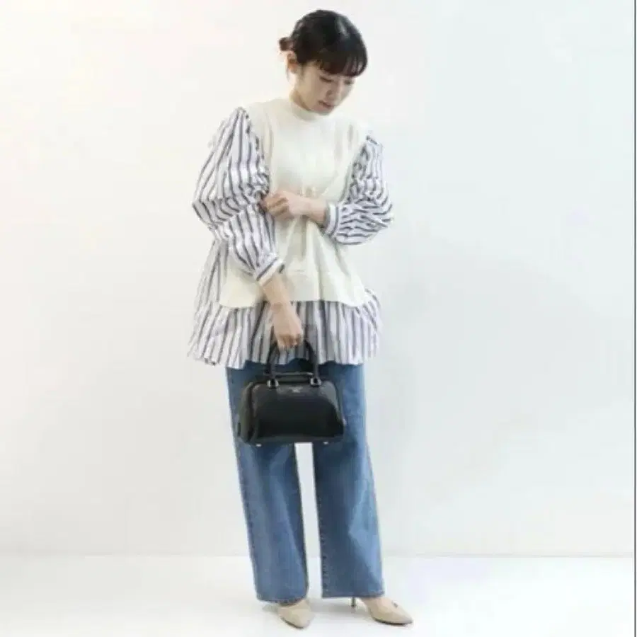 새상품 MICA&DEAL 베스트 도킹 플레어 블라우스 스트라이프 화이트