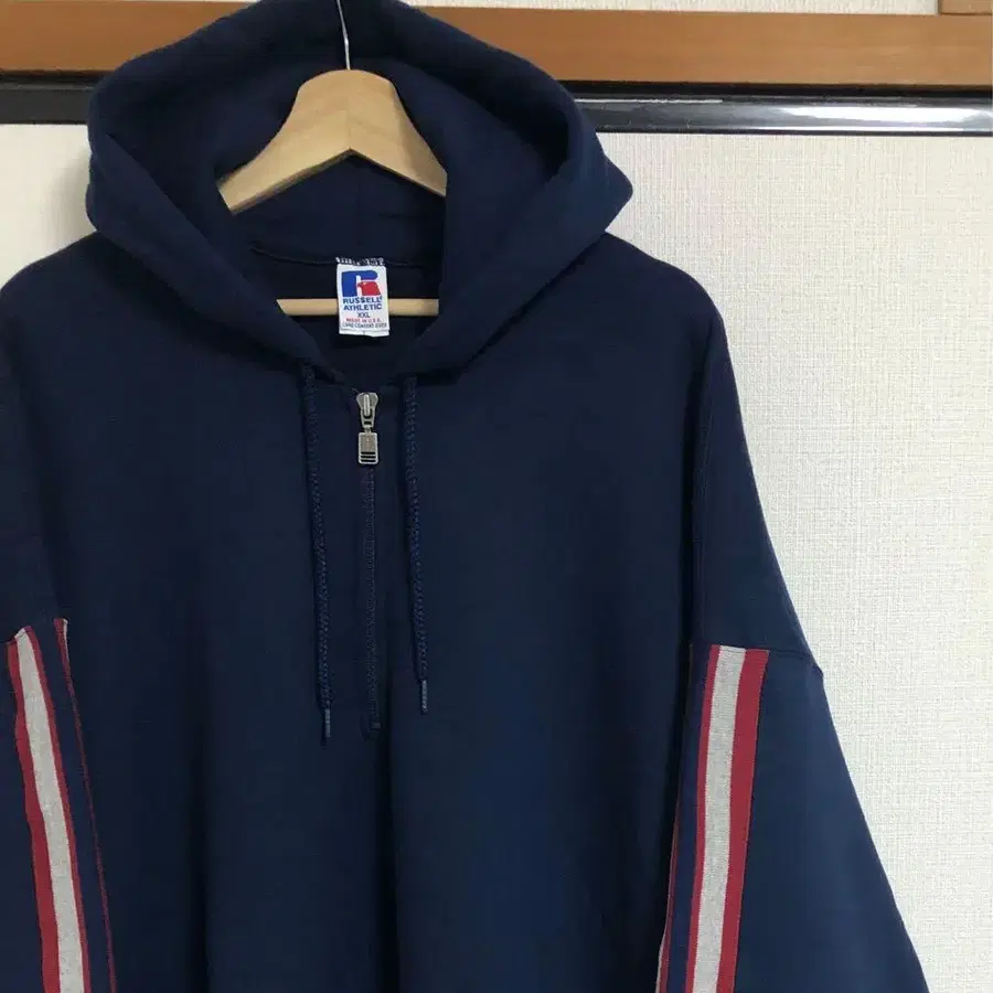 러셀의 후드 맨투맨 하프 지퍼 타입은 90년대 당시 생산량이 적어 현재 구제 의류 시장에서도 찾기 어렵지만, 이 제품은 더욱 희귀한 소매 라인 디자인이 들어간 매우 희소성 높은 스페셜 아이템입니다!!