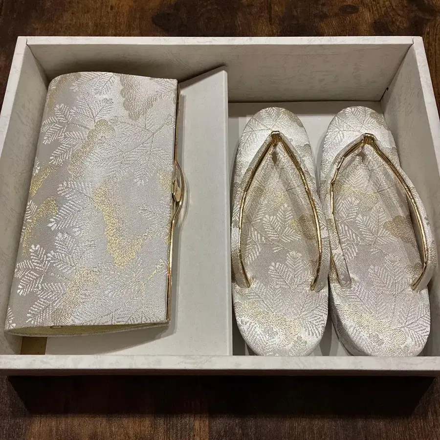 조리와 백 세트, 화이트와 금색 잎 무늬