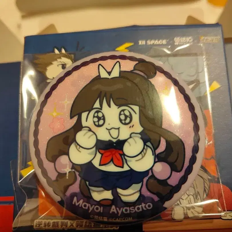 역전재판 중국 리본 고양이 콜라보 캔뱃지 아야사토 치히로