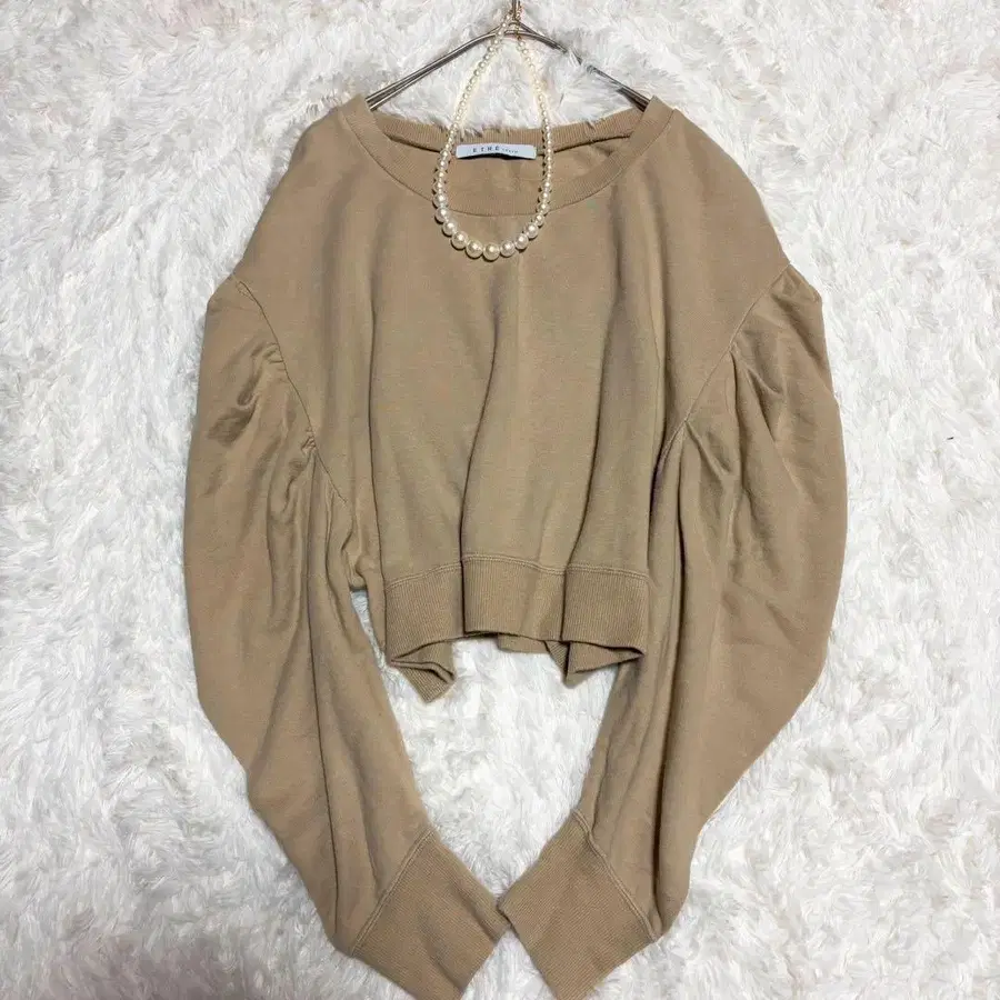 새상품급 ETRE TOKYO 베이지 크롭 기장 퍼프 슬리브 상의
