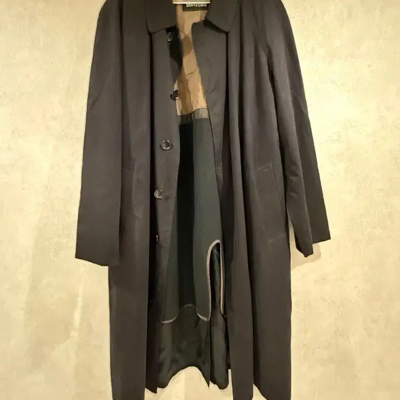 자동 번역되었어요. 원문보기다크 브라운(거의 블랙에 가까움) 체스터 코트, 단추식으로 롱 기장, 사이드 포켓 포함.