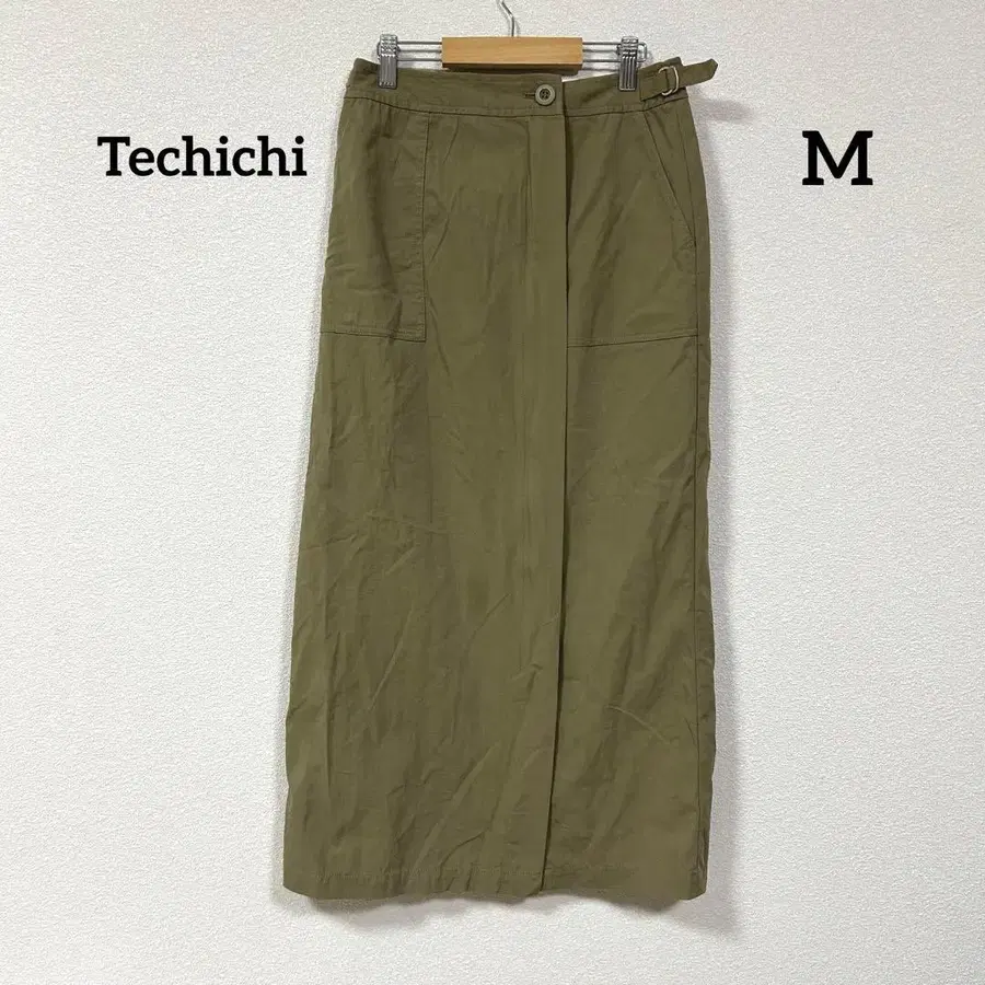 Techichi 카키 맥시 타이트 스커트 앞면 포켓 허리 벨트