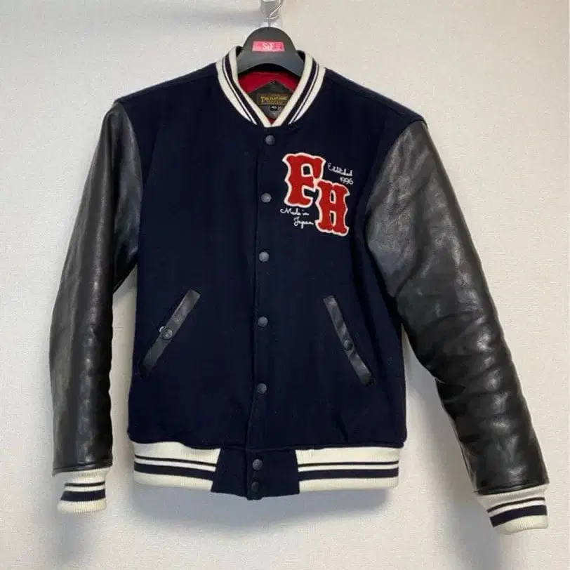 FLAT HEAD 바시티 자켓 네이비/블랙