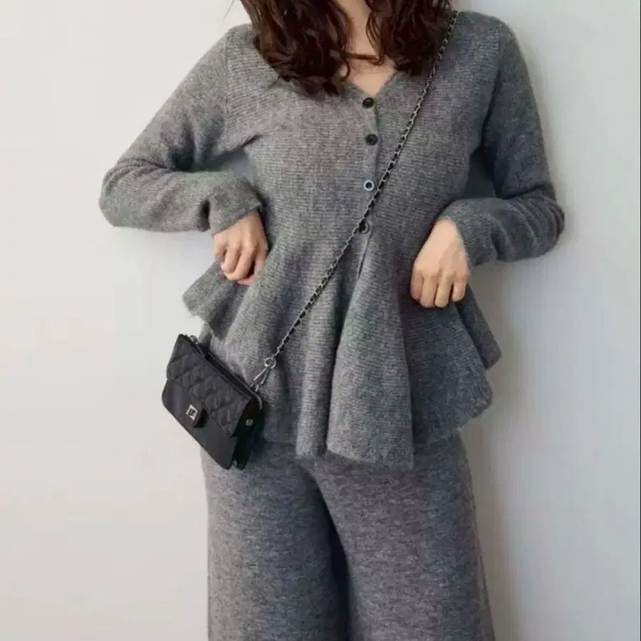 페플럼 니트 셋업 그레이 Frene 플라네 같은 형태 V넥