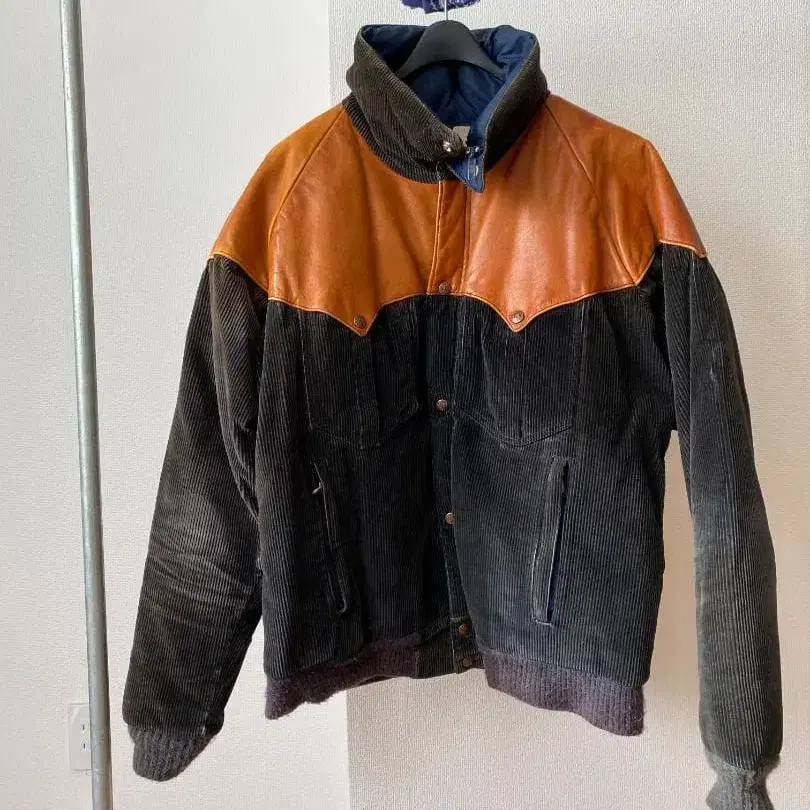 80s Powderhorn Mountaineering 블랙 코듀로이 다운 자켓 L 사이즈: L 정도 기장 69, 가슴 너비 61.5, 소매 길이 81.5 컬러 본체 (코듀로이): 블랙 ~ 다크 브라운 가죽 부분: 밤색 안쪽 (나일론): 네이비 80년대 초반 구제 의류 매장에서 구매했으나 사용하지 않아 양도합니다. 가죽 부분에는 스크래치와 얼룩이 있습니다 (사진 6~11번째). 안쪽 나일론에는 아직 탄력이 있는 상태입니다. 연대 대비 비교적 좋은 컨디션이라고 생각합니다. 오리지널로 컬러, 사이즈, 상태가 좋은 것은 보기 힘들어졌습니다. 독특한 컬러도 많은 파우더호른 중에서, 개인적으로는 고급스럽고 입기 쉬운 컬러링이라고 생각합니다. 개인 보관했던 제품이므로, 양해해 주시는 분께 부탁드립니다. 검토 부탁드립니다.