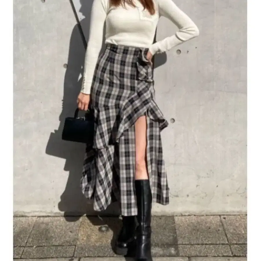 rienda 체크 프릴 슬릿 스코트 숏팬츠