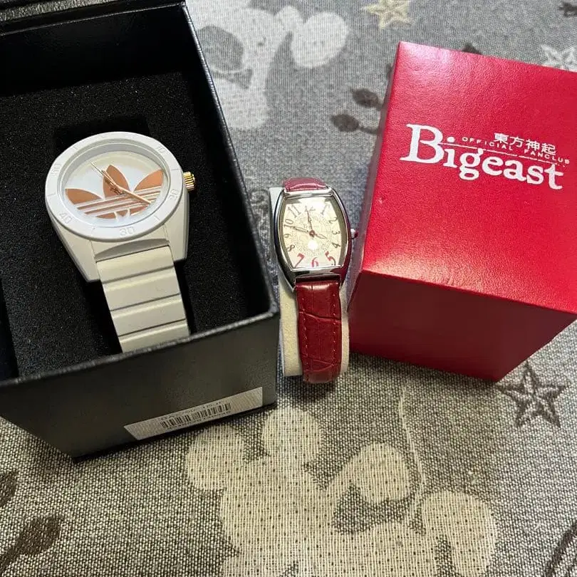 adidas 화이트 워치 & Bigeast 레드 가죽 워치