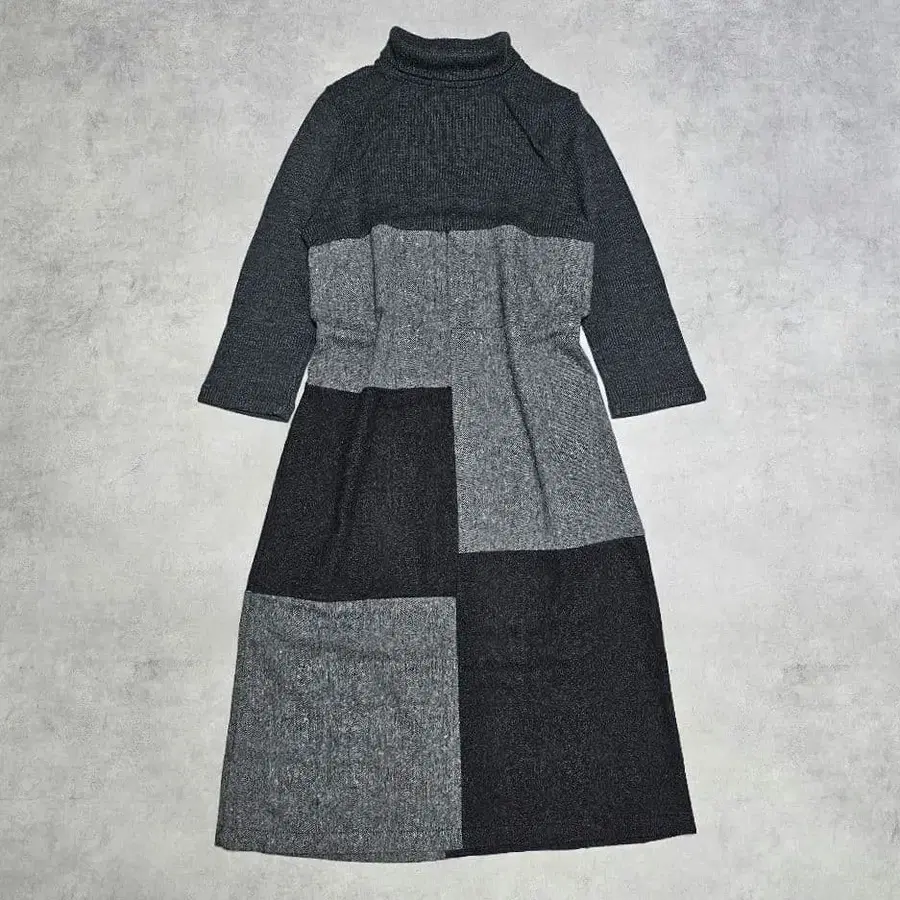 패치워크풍 롱 원피스 터틀넥 모노톤