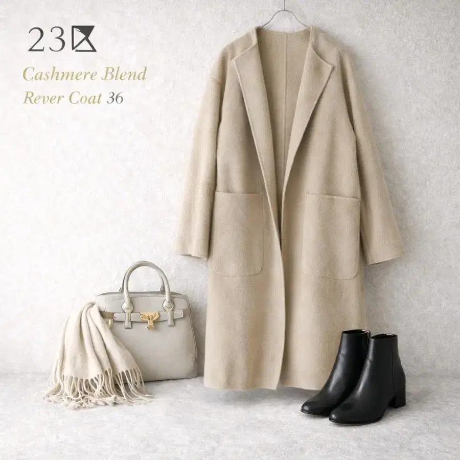 새상품급 23구 캐시미어 혼방 울 리버 코트 롱 코트 베이지 36