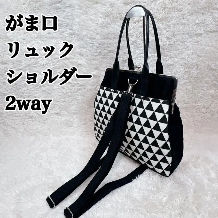 레어 대용량 A4 대응 가마구치 토트백 백팩 2way 기하학 패턴