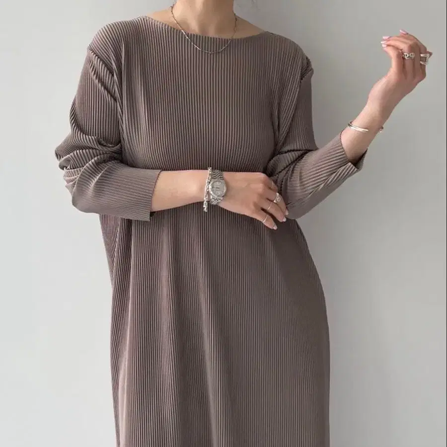 스트레치 크루넥 플리츠 원피스 [ 셀프 컷 가능 ]